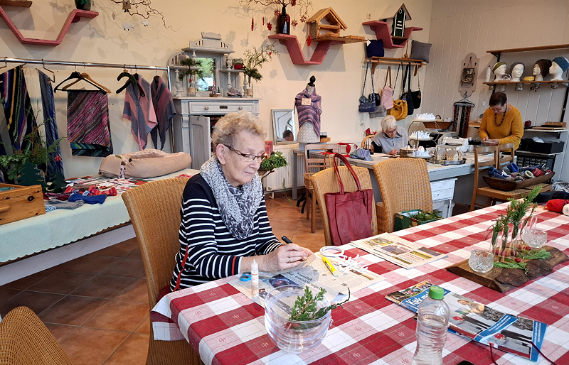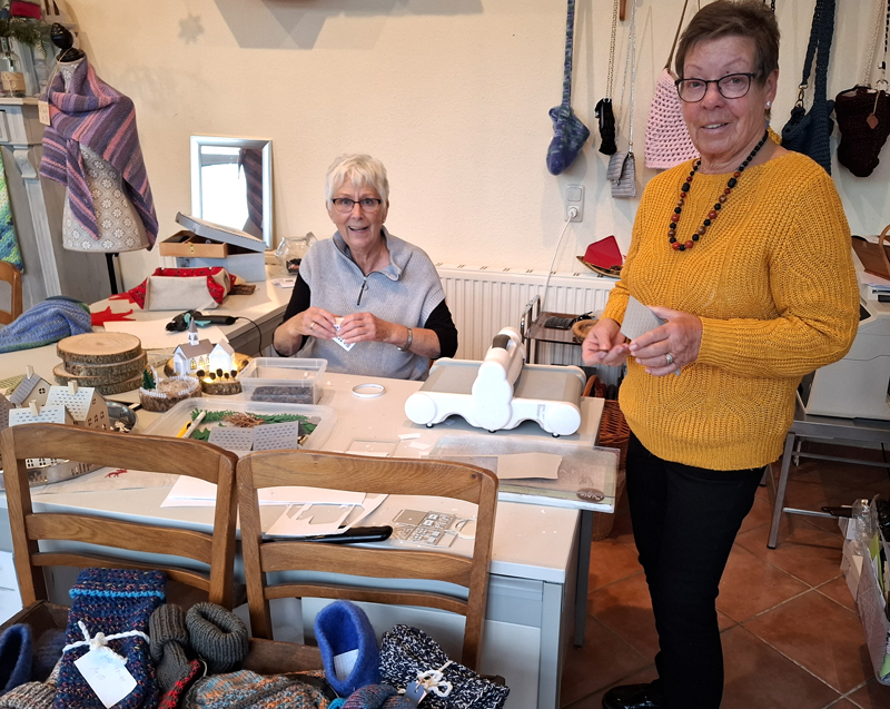 Schon längere Zeit vor der Gründung des Ideenreichs 2013, entwickelte Anne Anregungen durch die Gruppe „Glimmerhuus“ aus Hohn weiter, um eine Gruppe gleichgesinnter Frauen in Nindorf anzusprechen und ins Tun zu kommen. Besonders hat ihr das sinnhafte Arbeiten in Gemeinschaft bei den Besuchen der Ausstellungen des „Glimmerhuus“ gefallen. Anne holte sich Ute Kühl an ihre Seite, Rita Beer, Elsbeth Kühl, Heike Vossgerau, Birgit Hellingrath und Barbara Raddatz. Gesche Warnke, Margret Timm und Anne Sieck kamen nach und nach dazu. Birgit entschied sich für ein anderes Hobby und Gesche ist vor Kurzem verstorben. So war das „ Ideenreich“ Nindorf geboren mit Frauen alle nach ihrer ersten Berufstätigkeit. Zuerst noch im Hause Holm, dann im eigenen Werkstattladen nebenan. Harald Holm ist immer ansprechbar für Unterstützung, wenn es um Holz geht. Diese Handarbeitskünstlerinnen, alle im Seniorinnenalter, verbinden alte traditionelle Arbeiten wie Sticken, Stricken, Papierarbeiten etc. mit innovativen Anregungen aus dem Internet. Anne sagt alle waren mit dem „Ideengeierblick“ unterwegs, um ständig schöne neue Arbeiten umsetzen zu können. Jahreszeitenbezogen fertigen sie Frühlingsangebote, Kränze, filigrane Eier, Herbstbasteleien, Weihnachtsgestecke und immer textile wunderbare Kunstwerke auch für den täglichen Gebrauch an. Nachhaltigkeit wird großgeschrieben und unzählige benutzte Materialien werden neuen Zwecken zugeführt. Bei dem Besuch der Kommission „Unser Dorf hat Zukunft“ vor einigen Jahren, hat Anne darüber informiert. Jeden Dienstagnachmittag empfängt die eingeschworene Gruppe sehr gerne Gäste und Käufer/innen in ihrer Ideenreich Werkstatt im Remmelser Weg mit liebevoll geschmücktem Kaffeetisch und immer frischen Torten oder Kuchen. Die sehr vertraut wirkende Gemeinschaft der Ideenreicherinnen überzeugt durch ihre verinnerlichte Bereitschaft mit Lust, Leidenschaft und viel Herzblut ihre Arbeiten anzufertigen und kreativ darzubieten. Bewusst aufmerksam und liebevoll werden Bestellungen verpackt und verschickt. So liegt obenauf im Paket ein kleiner Gruß und die Rechnung im Kuvert unter der Bestellung im Karton. Durch persönliche Kontakte gehen auch Waren aus dem Ideenreich über Deutschlands Grenzen. Diese engagierte Gruppe hat sich einen Namen gemacht. Und doch hat alles seine Zeit. Die Ideenreicherinnen werden zum Ende des Jahres 2025 ihre Produktion nach 12 aktiven, innovativen und überaus interessanten Jahren einstellen. Besonders Anne hat durch die Gesamtverantwortung für Haus und Hof eine ruhigere Lebenszeit verdient. Anne Sieck spricht sich in Dankbarkeit für die Aufnahme in die Gruppe aus und lobt die schöne Gemeinschaft in der sie tolle Dinge erschaffen haben. Heike Vossgerau war von Anfang an dabei, hat schon sofort mit dem stricken begonnen, obwohl sie nach einer OP im Krankenhaus lag. Sie freut sich über die schönen gemeinsamen Erlebnisse auch bei Ausflügen. Barbara Raddatz kam etwas später dazu und obwohl sie damals in Handarbeit in der Schule ein ungenügend hatte, bestätigen ihr die Anderen handwerkliches Geschick. Sie freut sich das sie viel dazulernen konnte und ist traurig das es nun endet mit dem „Ideenreich“. Ute Kühl schwärmt von dem Zusammensein, der Zugehörigkeit und dem Vergnügen mit der Gemeinschaft. Rita Beer, Elsbeth Kühl und Margret Timm waren beim Interview nicht dabei. Der Dienstagnachmittag ist immer bei Allen als feste Größe geblockt, da müssen auch mal die Familien zurückstecken. Nun wird Ende November noch ein gemeinsamer Ausflug in ein Restaurant mit einem Gänseschmaus unternommen und die kreativen Ideenreicherinnen werden es sich in vertrauter Runde gut gehen lassen.