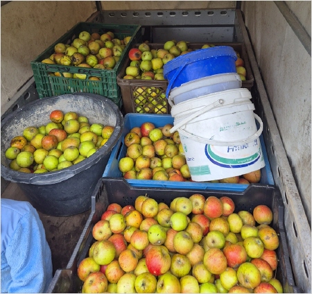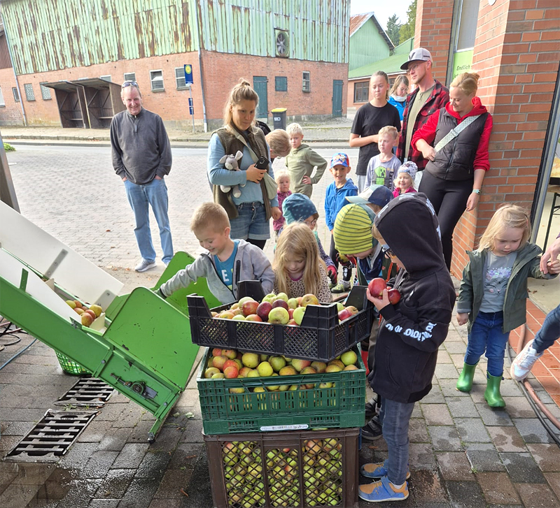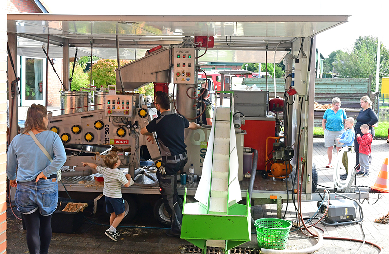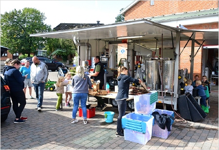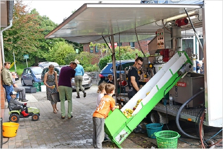 Es hatte sich rumgesprochen dass die "Mobile Saftpresse" in Nindorf stand. Viele Auswärtige nutzten die Gelegenheit ihr Obst zu mosten. Allerdings mussten die Angereisten mit langen Wartezeiten rechnen.