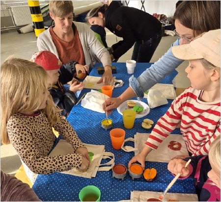 Äpfel schälen, Äpfel angeln und malen gehörte mit zum Kinderprogramm an diesem Vormittag
