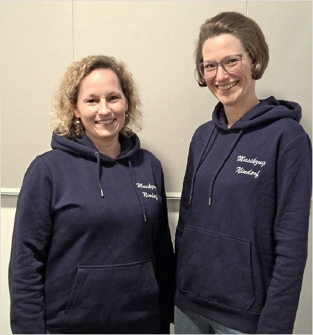 Christina und Jana präsentieren die neuen Musikzug-Sweatshirts