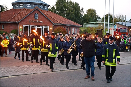 Wenn sich in Nindorf langsam die Blätter färben und es wieder früher dunkler wird, ist Laternelaufen angesagt. Unter der Regie der Freiwilligen Feuerwehr fand diese stimmungsvolle Tradition am Freitag, den 26. September statt. Musikalisch begleitet wurde der lange Laternenumzug vom Nindorfer Jugendmusikzug. Über 100 Kinder und Erwachsene nahmen an dieser abendlichen Veranstaltung teil.