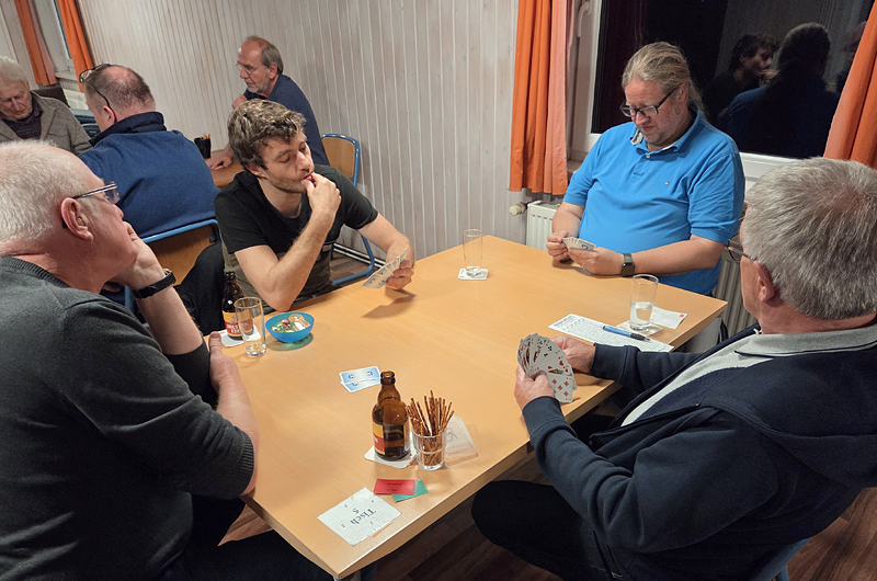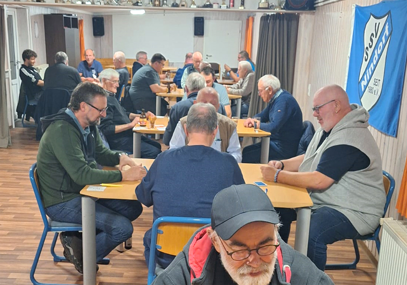 Am 02. Oktober fand auch in diesem Jahr wieder das obligatorische Skat- und Doppelkopfturnier des Nindorfer Sportvereins statt. Insgesamt spielten 29 Kartenspielfans an 7 Tischen. An 3 Skat- und 4 Doppelkopftischen wurden die Fleischpreise ermittelt. Knapp 5 Stunden lang wurde gereizt bzw. fanden die Damen ihren Partner. Da es Tischpreise gab, konnten sich die Spieler/innen an den einzelnen Tischen vor Beginn der beiden Runden über die Spielregeln einigen. Für das leibliche Wohl war auch gesorgt. Mit Knackwurst und Brot konnten sich die Teilnehmer/innen stärken.