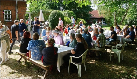 30. August 2025 - Das Sommerfest im Osterree 1 gehört ja schon fast zur Nindorfer Tradition. Zum vierten Mal trafen sich Nachbarn jeden Alters bei gutem Wetter zum Kennenlernen und Austausch. Der Kuchenreichtum war beeindruckend und alle Leckermäulchen kamen auf ihre Kosten.