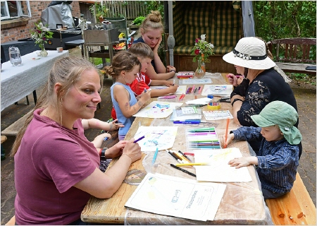 Auch für unsere kleinen Gäste wurde gesorgt. Ulrike hat sie mit einer Kinderdisco in Bewegung gebracht. Ingrid begeisterte die jungen Künstler in einem Malworkshop mit Schablonen und auf unserem kleinen Spielplatz vergnügten sich die Kinder mit Holzskiern, Entenangeln und Zielwerfen. Fürs nächste Jahr ist schon ein Schmink Workshop für Kinder geplant.