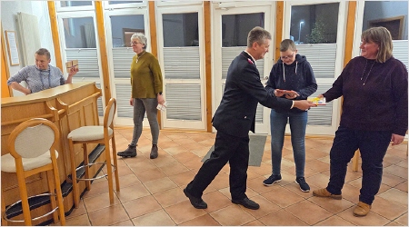 Eine kleine Anerkennung gab es vom Wehrführer für die Bewirtschafterinnen