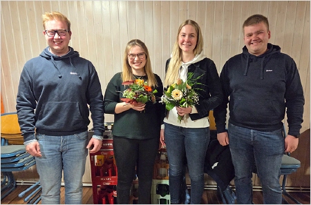 Bei den anschließenden Wahlen gab es einige Veränderungen. Zur ersten Vorsitzenden wählte die Versammlung einstimmig Lotta Bünz. Bente Junge wurde 2. Vorsitzende und 3. Vorsitzende Saskia Kauschke. Bei den Männern blieb alles beim Alten. 1. Vorsitzender bleibt Brian Lindemann. Torge Wieben (2. Vorsitzender) und Sören Bünz (3. Vorsitzender) wurden ebenfalls in den Ämtern bestätigt. Für die Finanzen bleibt weiterhin Beke Lindemann zuständig und den Schriftverkehr erledigt Maik Wiekhorst. Raumwarte sind Leon Sievers und Jorris Lohse. Zum Getränkewart wählte die Versammlung Henry Kauschke und zum/r Beisitzern/in wurden Aileen Sievers und Lucas Grewe ernannt. Die Kasse prüft im nächsten Jahr Jorge Riecken. Die Wahlen leitete Tessa, die 1. Vorsitzende des Kreislandjugendverbands.