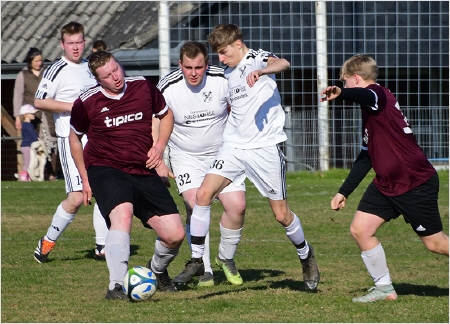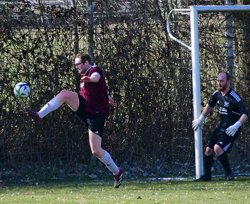Auch die zweite Hälfte blieb ruppig. In der 50. Minute musste Sven Struve nach einem üblen Foul verletzungsbedingt ausgewechselt werden. Der Gegner ging mit offener Sohle in den Mann, keine Chance den Ball zu treffen. Eine klare rote Karte. Schiri Roch beließ es bei Gelb. Lion Delfs sorgte in der 55. Minute für das 3:0. Die Abwehr der SG stand jetzt gut und ließ kaum noch klare Torchancen der Gegner zu. Georg Reichelt versenkte das Leder in der 60 Minute zum 4:0 ins gegnerische Netz. Für das Endergebnis sorgte dann Pascal Beer in der 80. Minute. Er drosch das Spielgerät zum 5:0 in die Maschen.