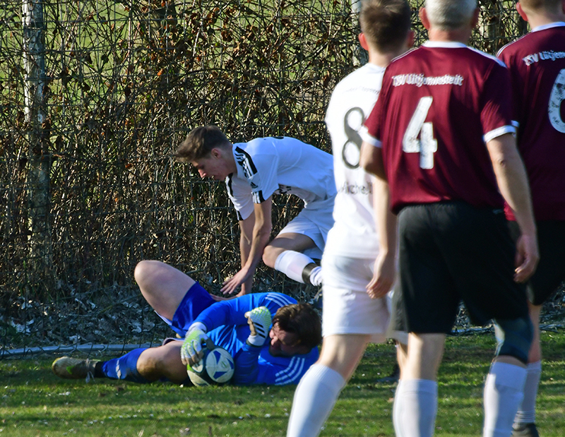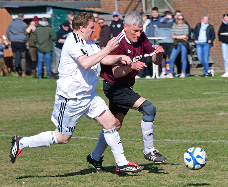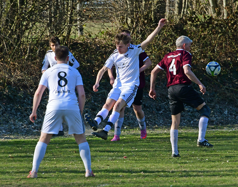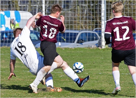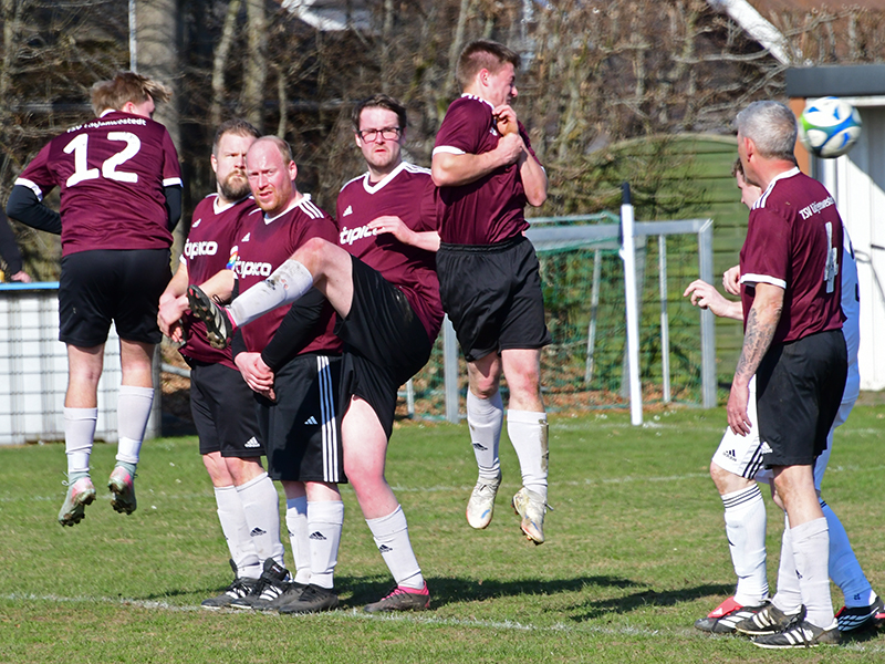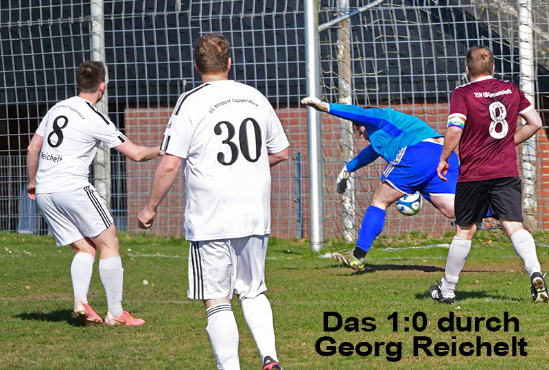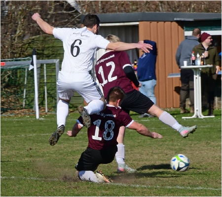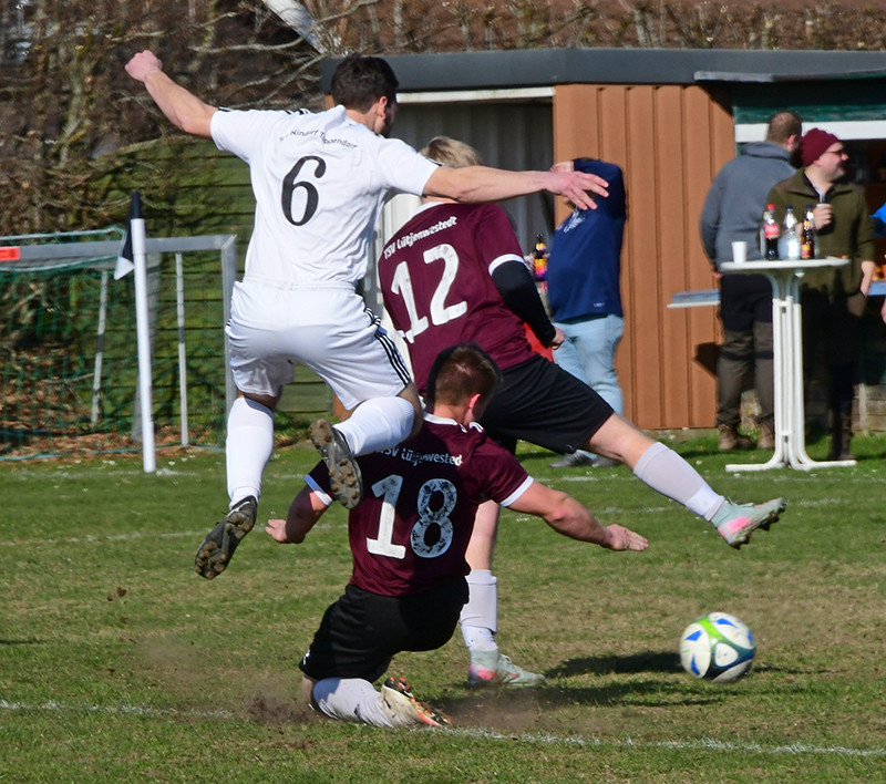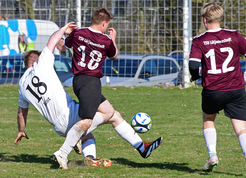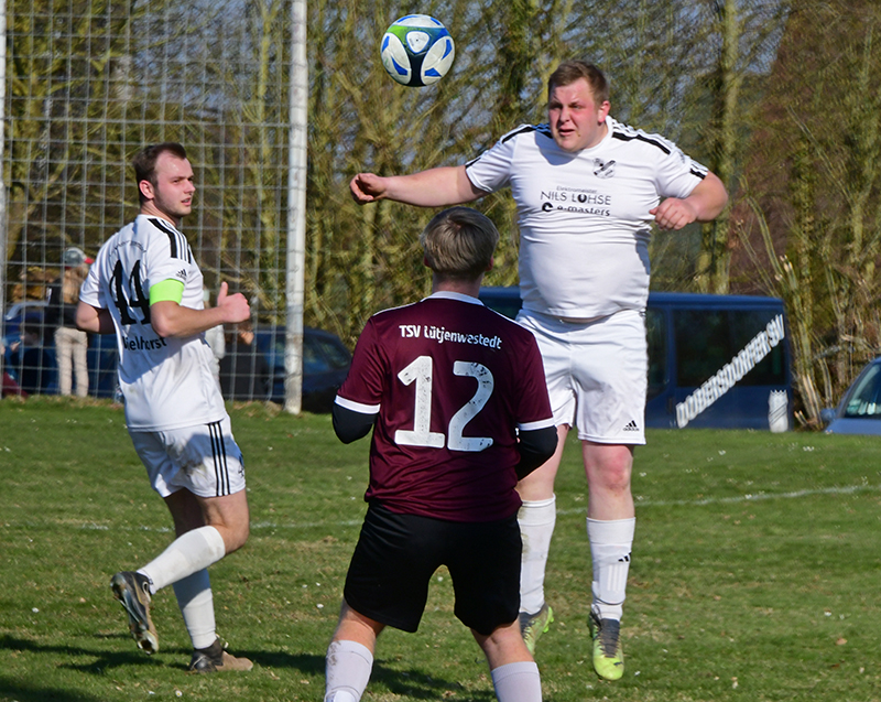 Die Abwehr der Spielgemeinschaft Nindorf/Tappendorf war in den Anfangsminuten nicht sonderlich sattelfest. Allerdings konnten dies die Gäste aus Lütjenwestedt nicht ausnutzen. Vorne lief es bei der SG besser. Das 1:0 schoss Georg Reichelt in der 11. Minute. Es war eine ruppige Partie. Schiri Roch ermahnte mehrfach zur Vorsicht. Sven Struve erhöhte in der 22. Minute mit einem sehenswerten Kopfballtor zum 2:0. Mit diesem Ergebnis ging es auch in die Halbzeit.