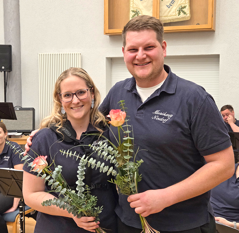 25 Jahre im Musikzug sind Nele Gerdt und Dennis Rohwer-gr. Feldhaus