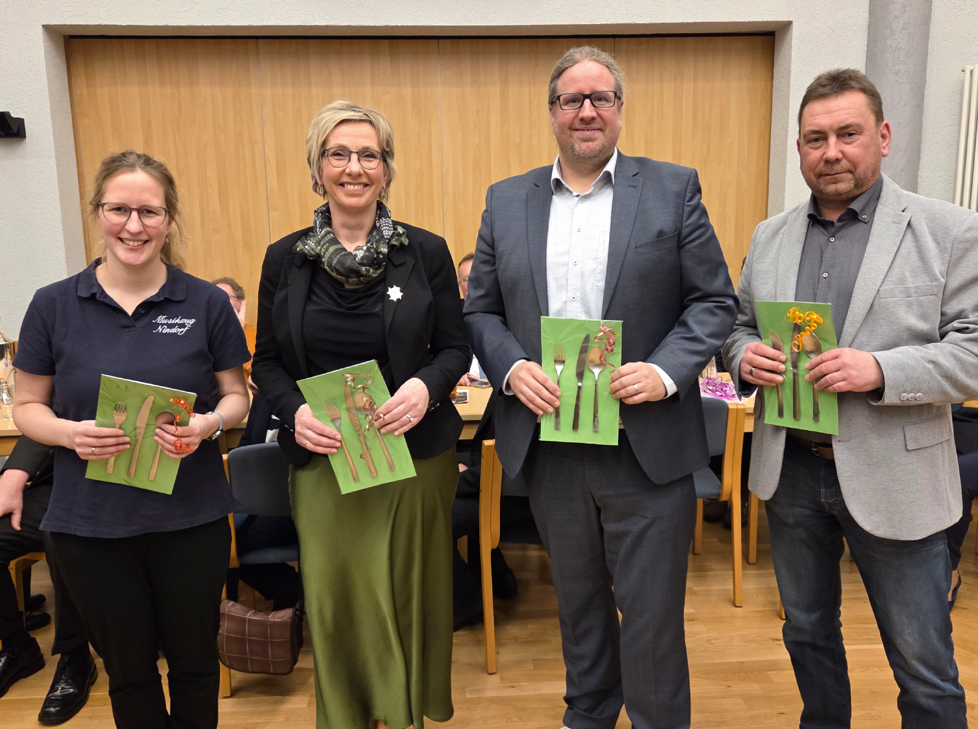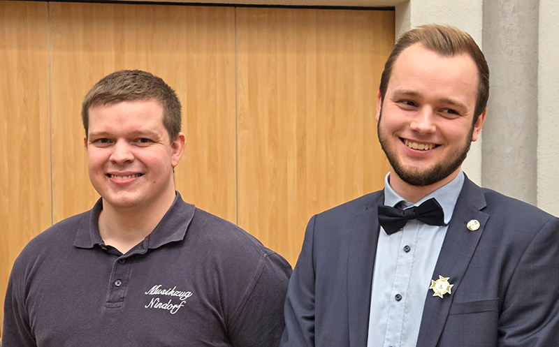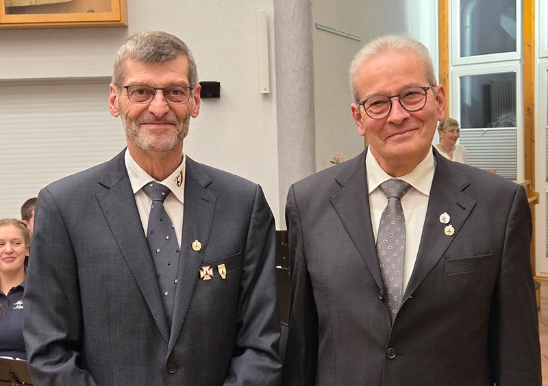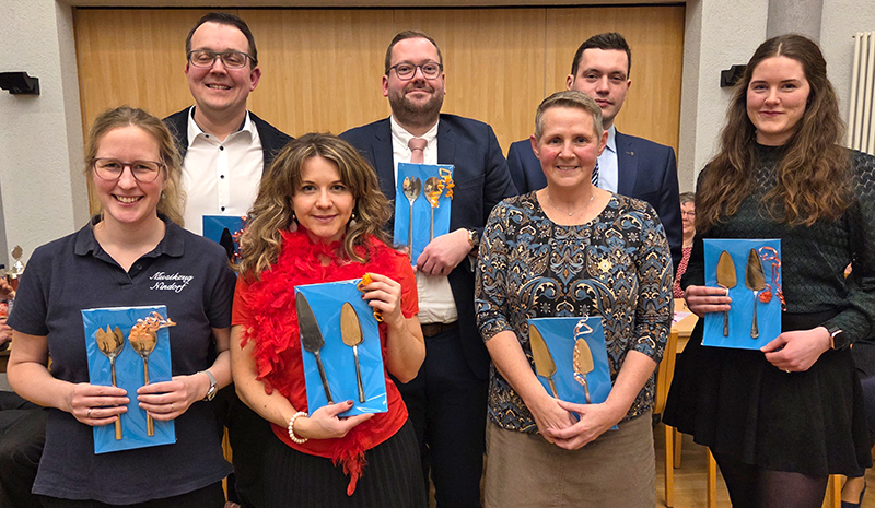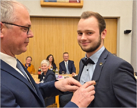 Ehrungen standen weiterhin auf dem Programm. 15 Jahre im Musikzug sind Yuliya Sommer und Insa Trede, 25 Jahre dabei sind Nele Gerdt und Dennis Rohwer. Ihnen wurde die silberne Ehrennadel angesteckt. Bereits 50 Jahre Kyffhäuser Kameraden sind Jens Rohwer und Dietmar Karwat. Ihnen wurde die Kyffhäuser-Ehrennadel in Gold angesteckt. Außerdem nutzte der Vorsitzende Dietmar Karwat den offiziellen Rahmen, um die Schützen und Schützinnen zu ehren, die im Jahre 2025 bei den Bundesmeisterschaften glänzten. Den zweiten Platz beim Einzelschießen der Frauen belegte Jutta Sievers. Petra Horns wurde dritte. Ganz oben auf dem Treppchen stand Maik Wiekhorst beim Bundeswettbewerb in der Einzelwertung auf dem Podest. Und wie schon etliche Jahre zuvor gewann die Mannschaft der Senioren mit Dietmar Karwat, Helmut Bünz und Boto Wittgrefe die Bundesmeisterschaft.