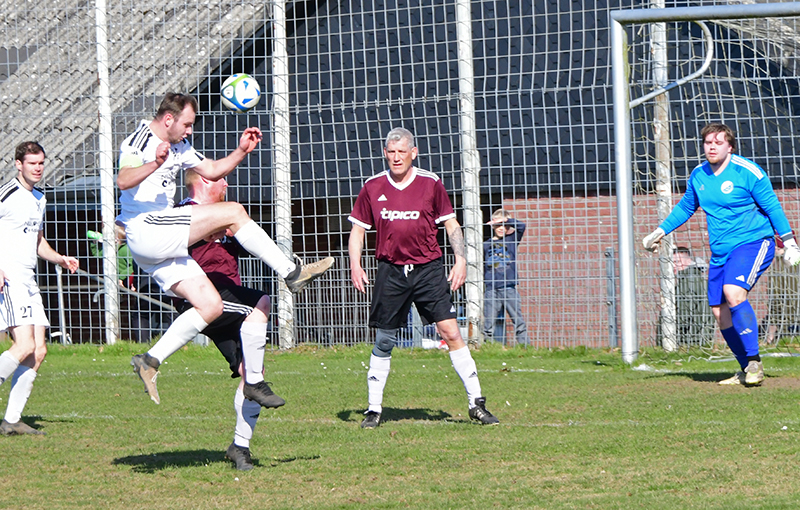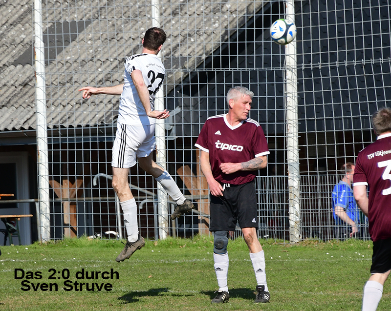 Die Abwehr der Spielgemeinschaft Nindorf/Tappendorf war in den Anfangsminuten nicht sonderlich sattelfest. Allerdings konnten dies die Gäste aus Lütjenwestedt nicht ausnutzen. Vorne lief es bei der SG besser. Das 1:0 schoss Georg Reichelt in der 11. Minute. Es war eine ruppige Partie. Schiri Roch ermahnte mehrfach zur Vorsicht. Sven Struve erhöhte in der 22. Minute mit einem sehenswerten Kopfballtor zum 2:0. Mit diesem Ergebnis ging es auch in die Halbzeit.