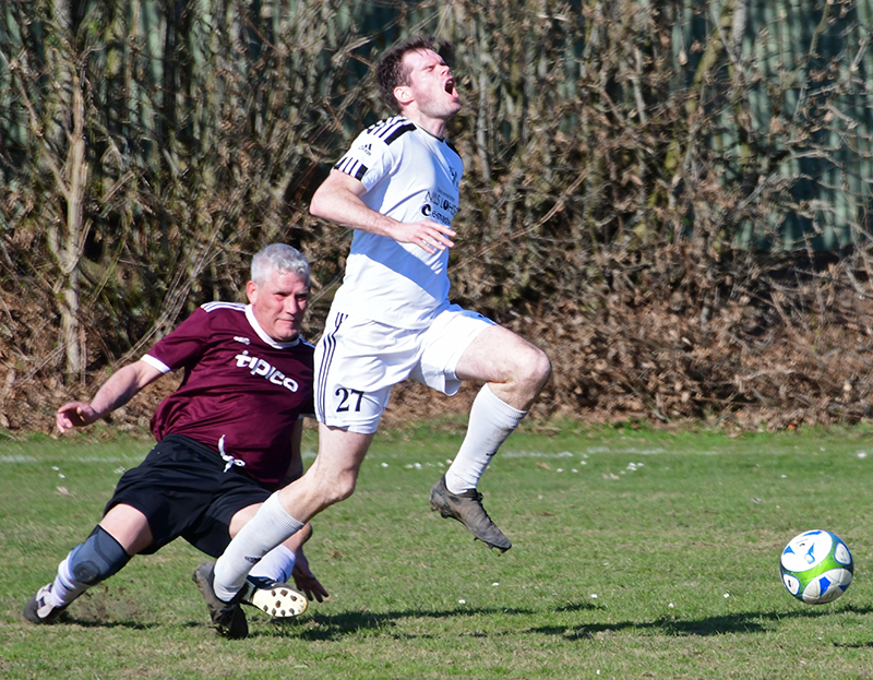 Auch die zweite Hälfte blieb ruppig. In der 50. Minute musste Sven Struve nach einem üblen Foul verletzungsbedingt ausgewechselt werden. Der Gegner ging mit offener Sohle in den Mann, keine Chance den Ball zu treffen. Eine klare rote Karte. Schiri Roch beließ es bei Gelb. Lion Delfs sorgte in der 55. Minute für das 3:0. Die Abwehr der SG stand jetzt gut und ließ kaum noch klare Torchancen der Gegner zu. Georg Reichelt versenkte das Leder in der 60 Minute zum 4:0 ins gegnerische Netz. Für das Endergebnis sorgte dann Pascal Beer in der 80. Minute. Er drosch das Spielgerät zum 5:0 in die Maschen.